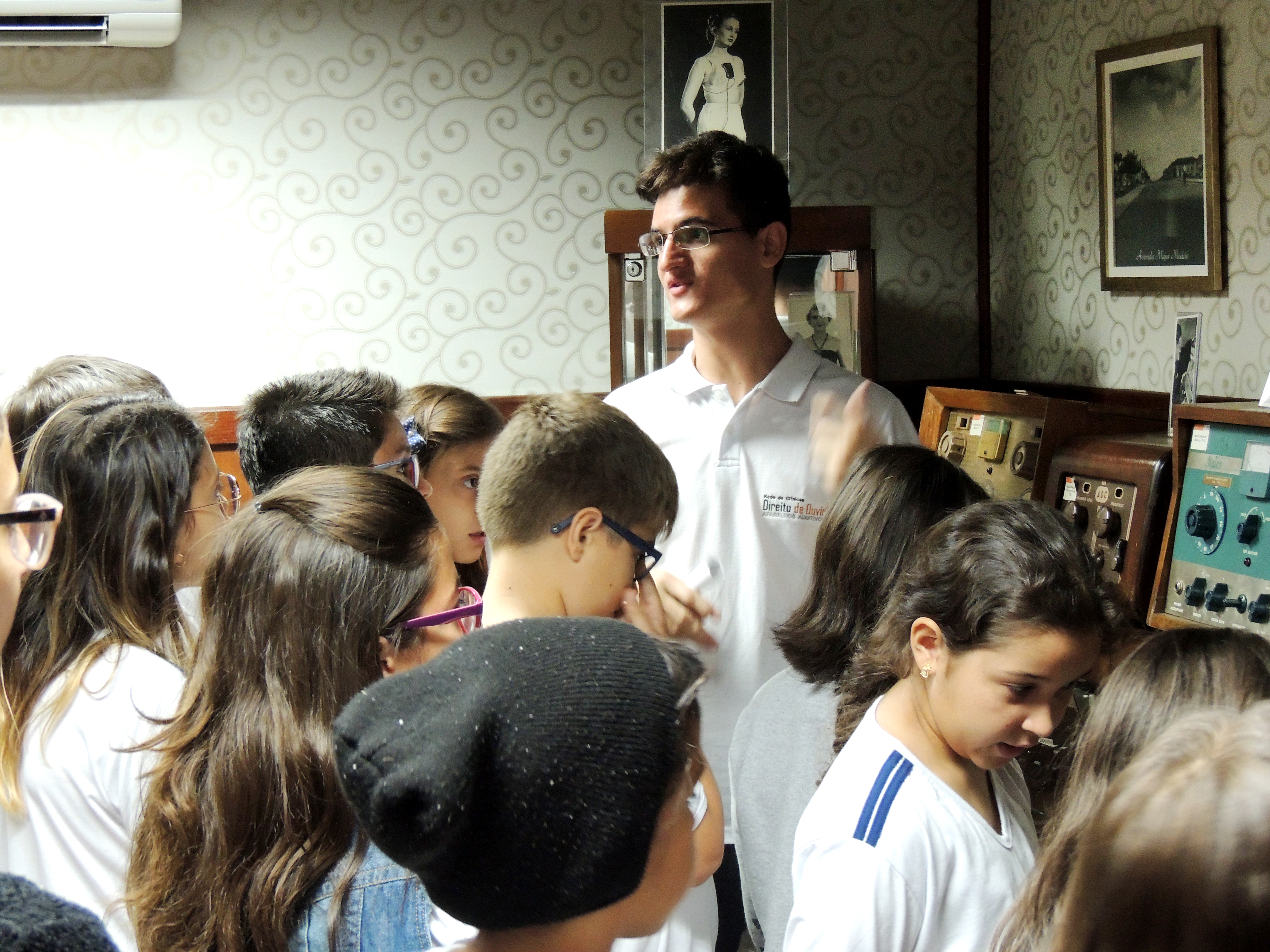Alunos do Colégio Jesus Maria José visitam o Museu do Aparelho Auditivo.